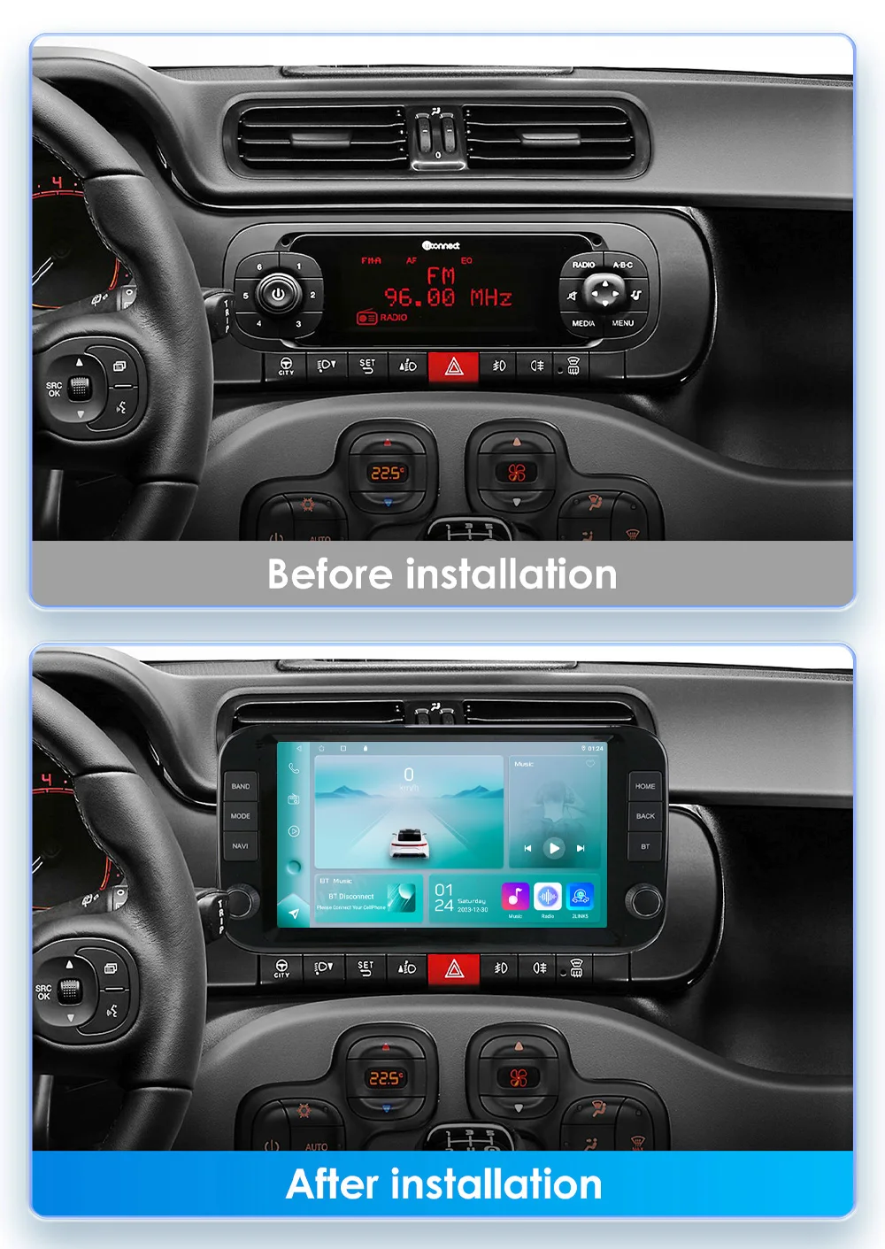 Si tratta di un sistema di alta' qualità costruttiva che sostituisce l'autoradio di serie, mantenendo l'utilizzo dei comandi al volante e di tutte funzionalità di cui l'auto è dotata dalla fabbrica. Grazie al sistema operativo android installato su questo dispositivo, potrai utilizzare Apple Carplay e Android auto, scaricare tutte le app presenti su Google Play store, rimanere sempre connesso ai tuoi canali social come Facebook, Instagram e X, ascoltare le tue canzoni preferite su Spotify,guardare gli ultimi video su Youtube, guardare i programmi tv in streaming o perfino guardare un film su Netflix o Amazon Prime video mentre sei viaggio con i tuoi cari.